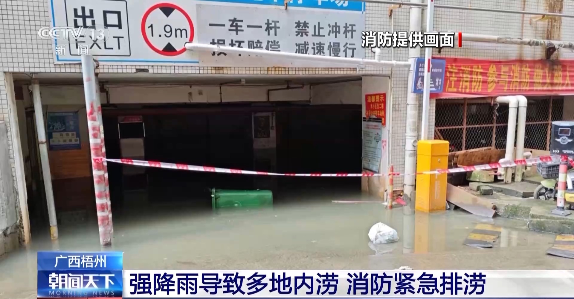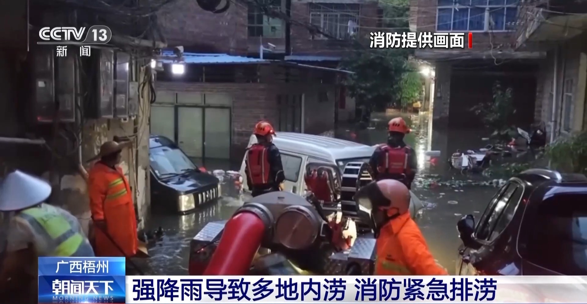 昨天(10日)凌晨,广西梧州市龙圩区突降暴雨,降水量达到140毫米,多处发生内涝。当地消防接到报警后,调派人员及排涝车赶赴现场处置。