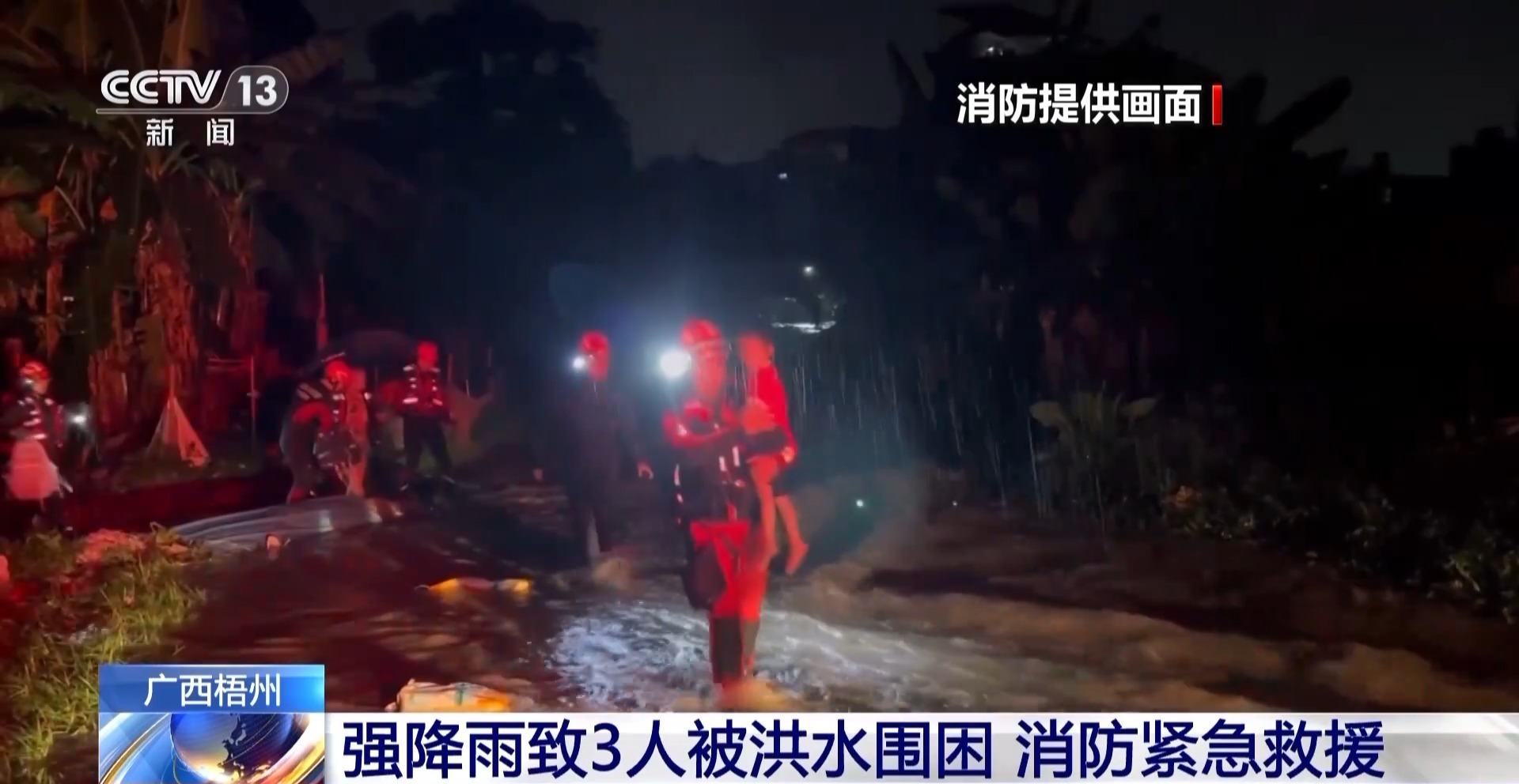 此外,强降雨昨天还导致梧州市龙圩区一处地势低洼的民房被洪水围困,一名老人和两名儿童被困。接警后,梧州市消防救援支队立即赶赴现场。